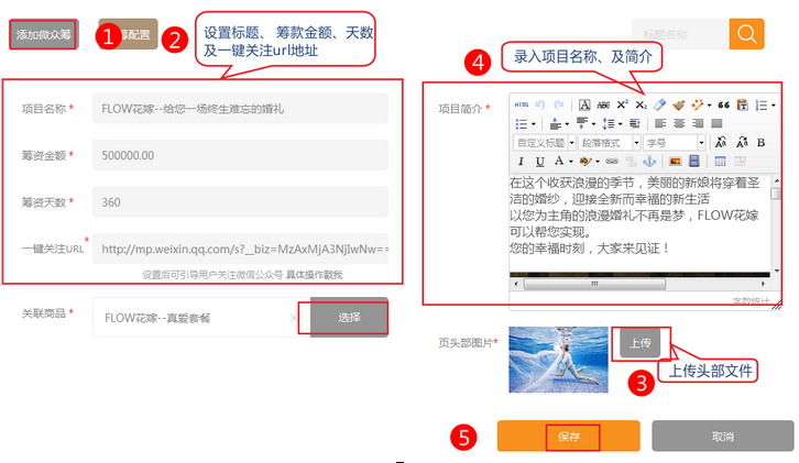 1.依次点击 微信管理-》微信应用-》微众筹-》众筹配置
